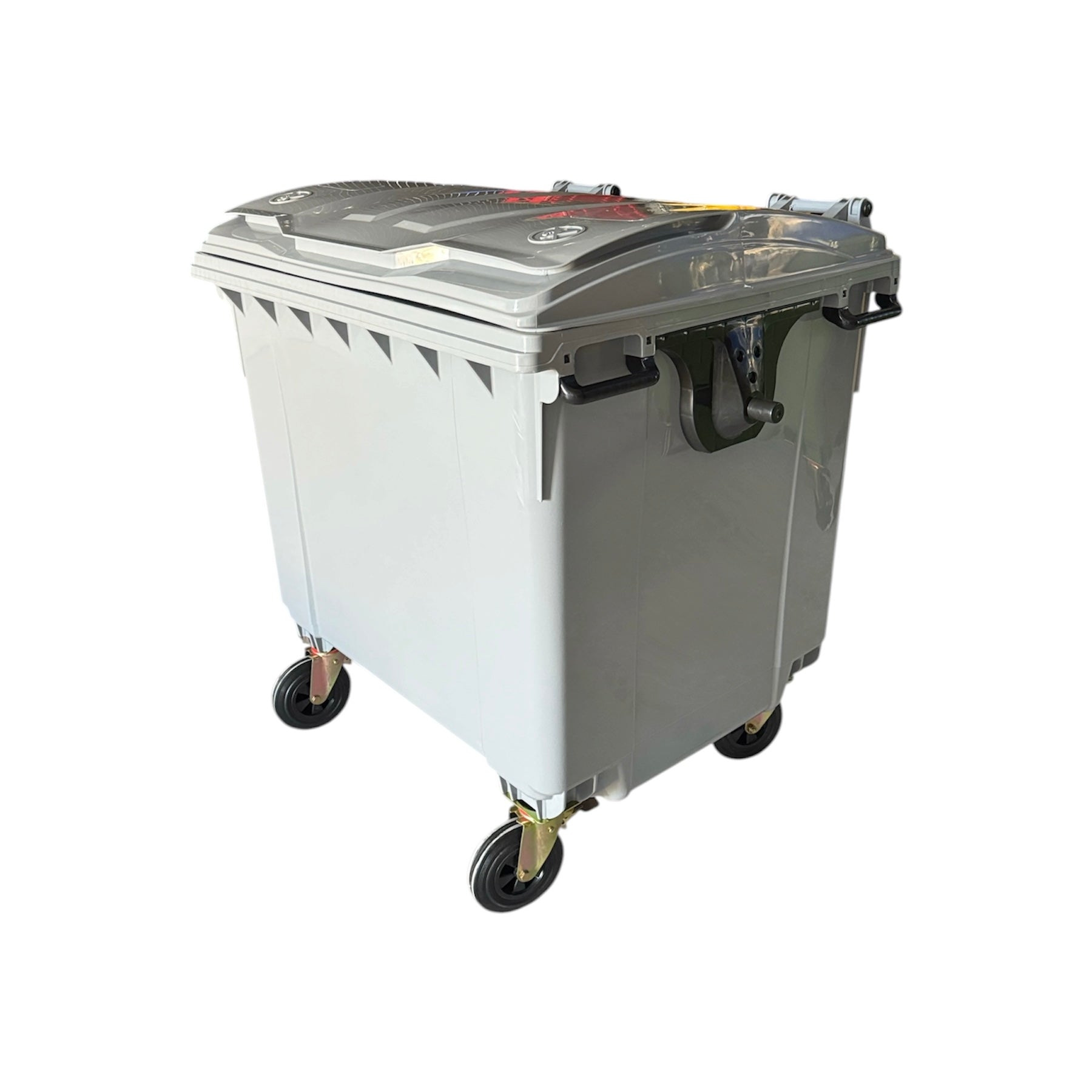 El contenedor de basura móvil 1100L está diseñado para almacenar residuos temporalmente y para ser levantado con dispositivos de elevación. El contenedor se fabricó de acuerdo con la normativa europea Estándares (EN840-2/5/6), tiene un grosor medio de 4mm.