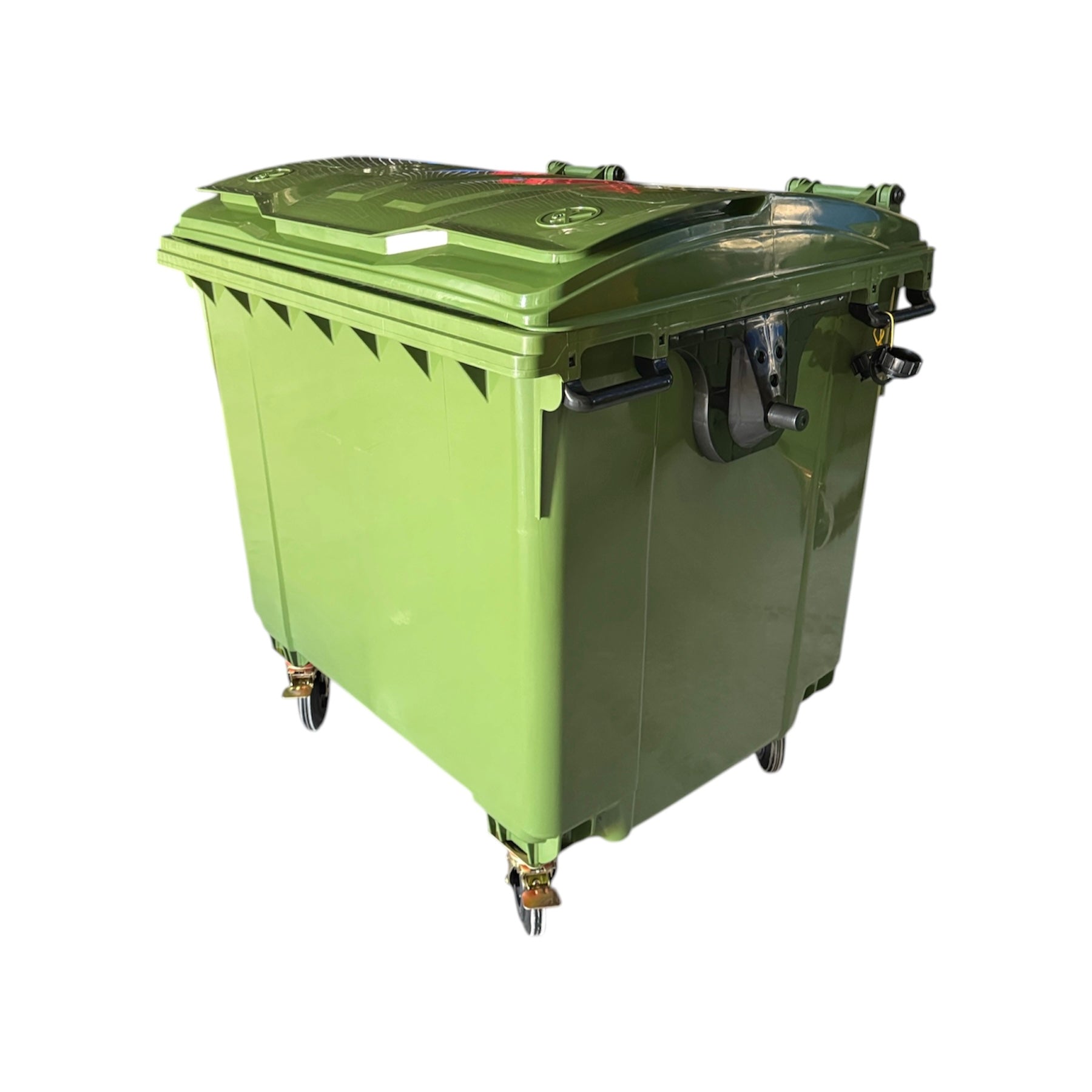 El contenedor de basura móvil 1100L está diseñado para almacenar residuos temporalmente y para ser levantado con dispositivos de elevación. El contenedor se fabricó de acuerdo con la normativa europea Estándares (EN840-2/5/6), tiene un grosor medio de 4mm.